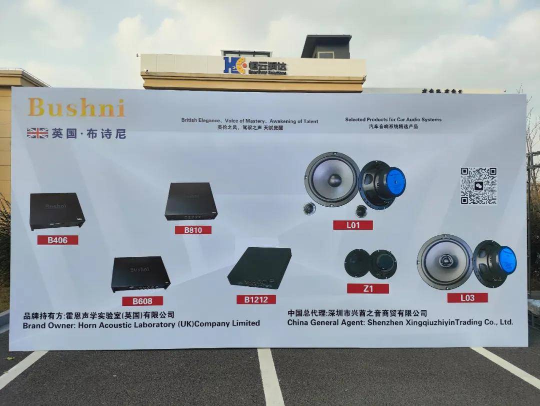 英国·布诗尼作为大赛赞助品牌,在现场设立了产品展示与试听体验区,成为众多发烧友与改装店家关注的焦点。精致的产品设计、扎实的工艺细节,吸引了不少人驻足端详。而真正让人印象深刻的,是亲自坐进试听车内,感受声音在有限空间内营造出的无限场景感与情感张力——那是一种清晰到触手可及,却又细腻富有层次的声音表现。